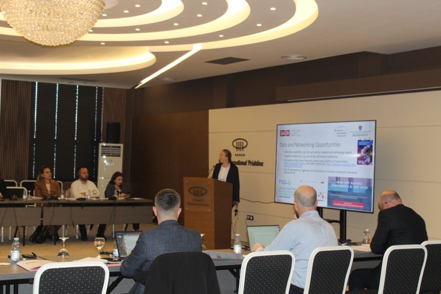 The event brought together major stakeholders from Kosovo’s research, policy and higher education communities, including representatives from the National Science Council, the Ministry of Education, Science, Technology and Innovation, and public university leaders. Presentations covered the national research programme in Kosovo as well as international best practices in research commercialisation—as illustrated by Austria’s academic spin-off ecosystem.