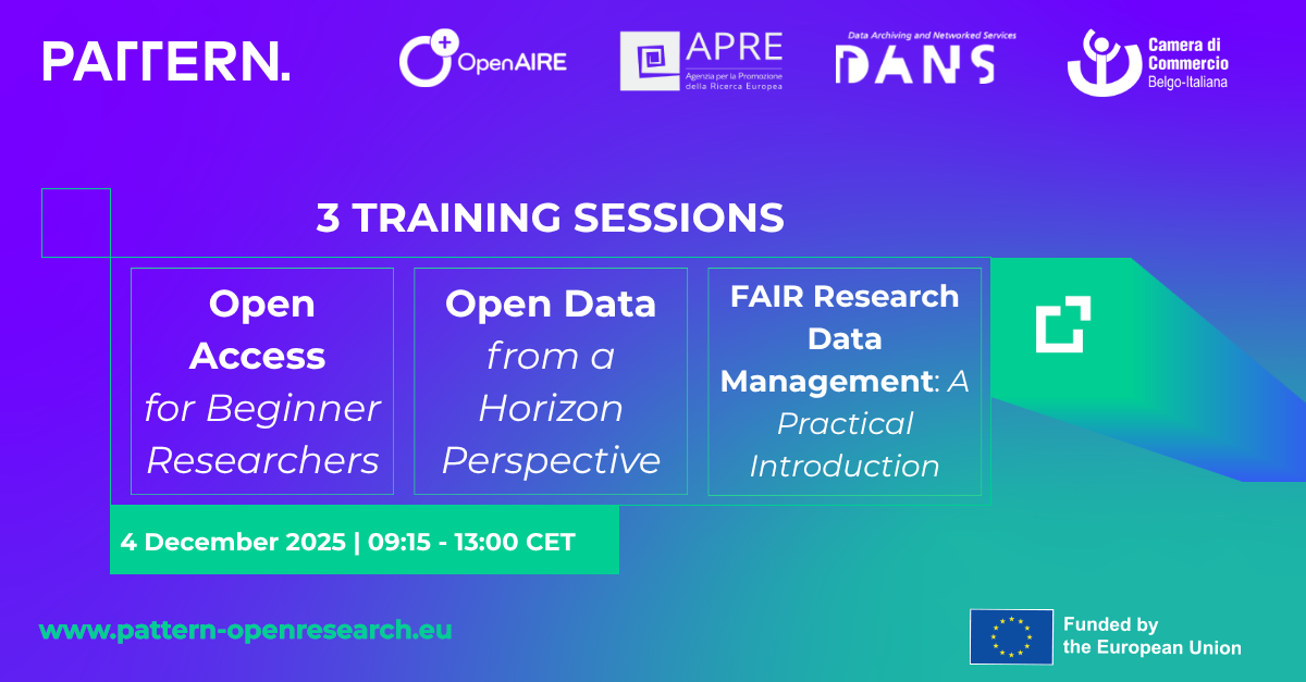 Between late November and early December 2025, PATTERN offers four open training opportunities designed for early-career researchers, research managers, and anyone interested in advancing open and responsible research practices. All sessions are free to attend upon registration.